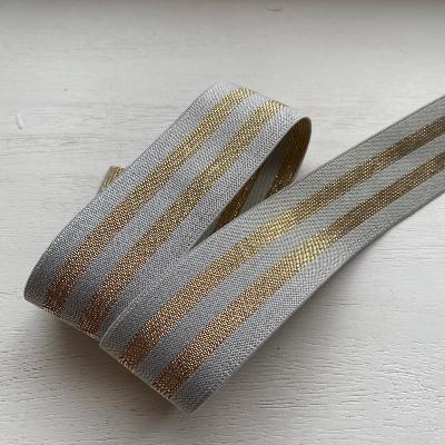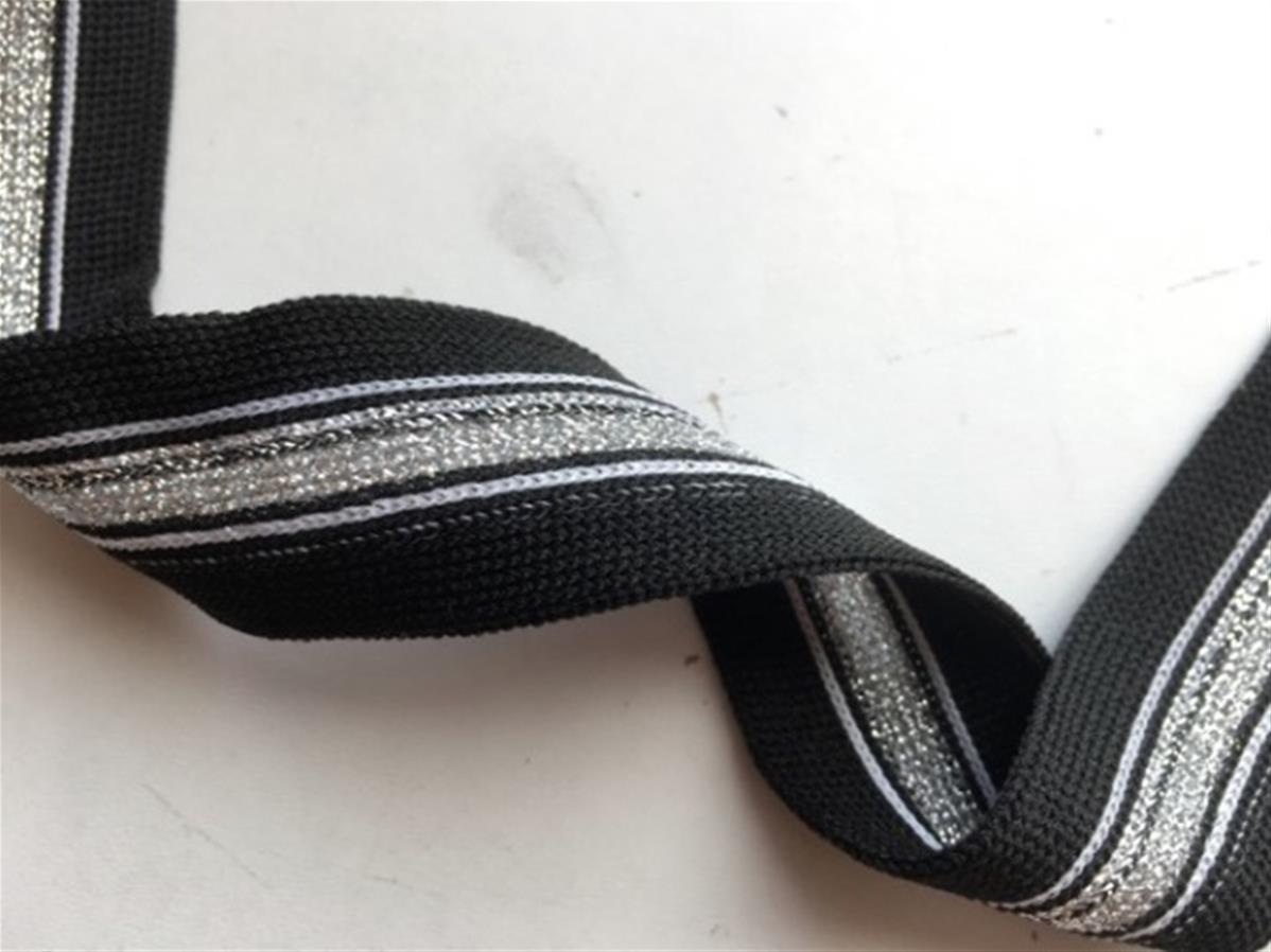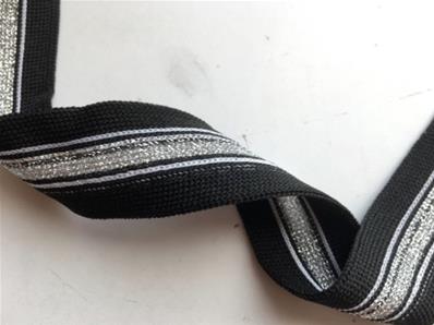Bande de 2,5 cm de large, en jersey souple, extensible dans les deux sens. Elle est légèrement élastiquée mais ne peut pas être utilisée à proprement parler comme un élastique. Sa souplesse permet de la coudre le long d'une manche ou sur un pantalon et ainsi ne pas perdre en aisance.