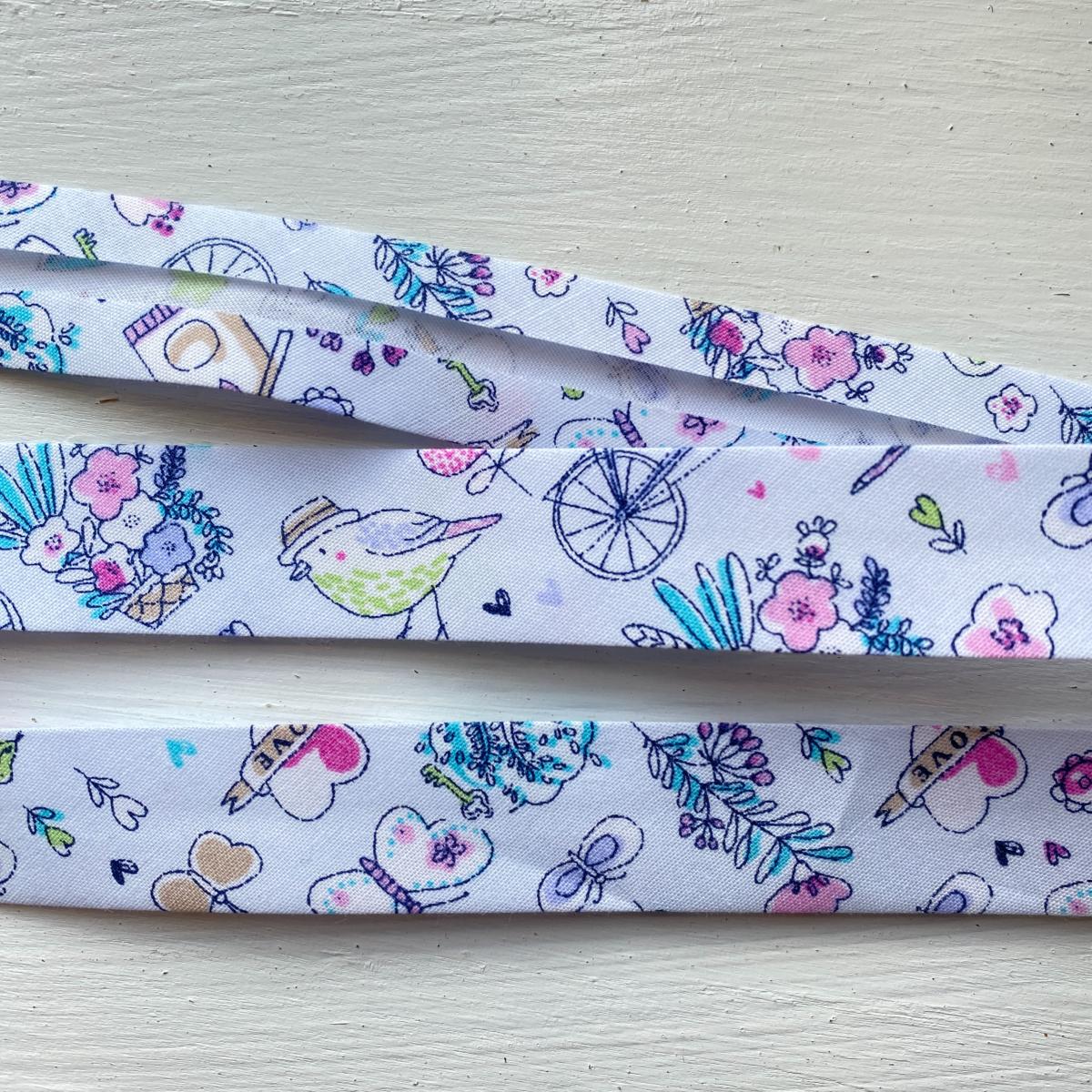 Biais en coton replié de 2 cm de large. Finira une robe, une chemise .. Très joli autour d'un bavoir, d'une serviette de toilette .. Prix indiqué pour un mètre.
