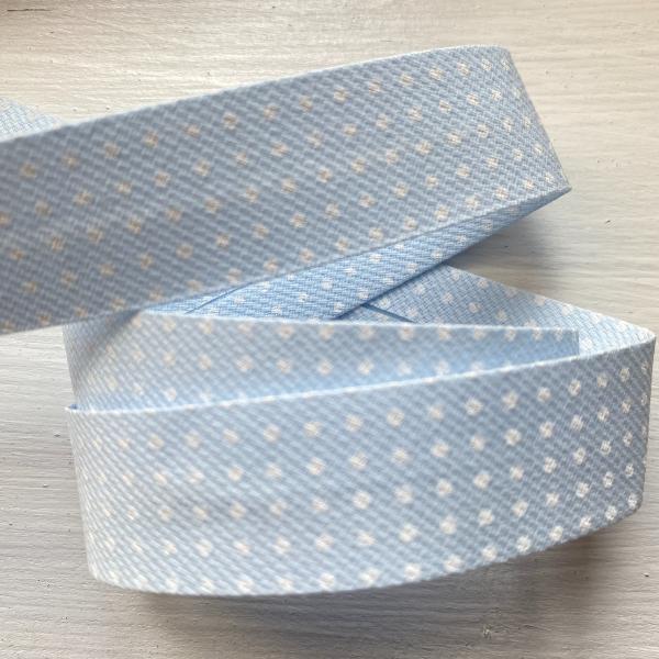 Prix indiqué pour un mètre. Biais replié, 100% coton, de 2 cm de large. Cettes teintes pastels finiront avec beacoup de douceur un ouvrage (en bordure de bavoir ou de sortie de bain pour bébé ...). Disponible en 4 couleurs.