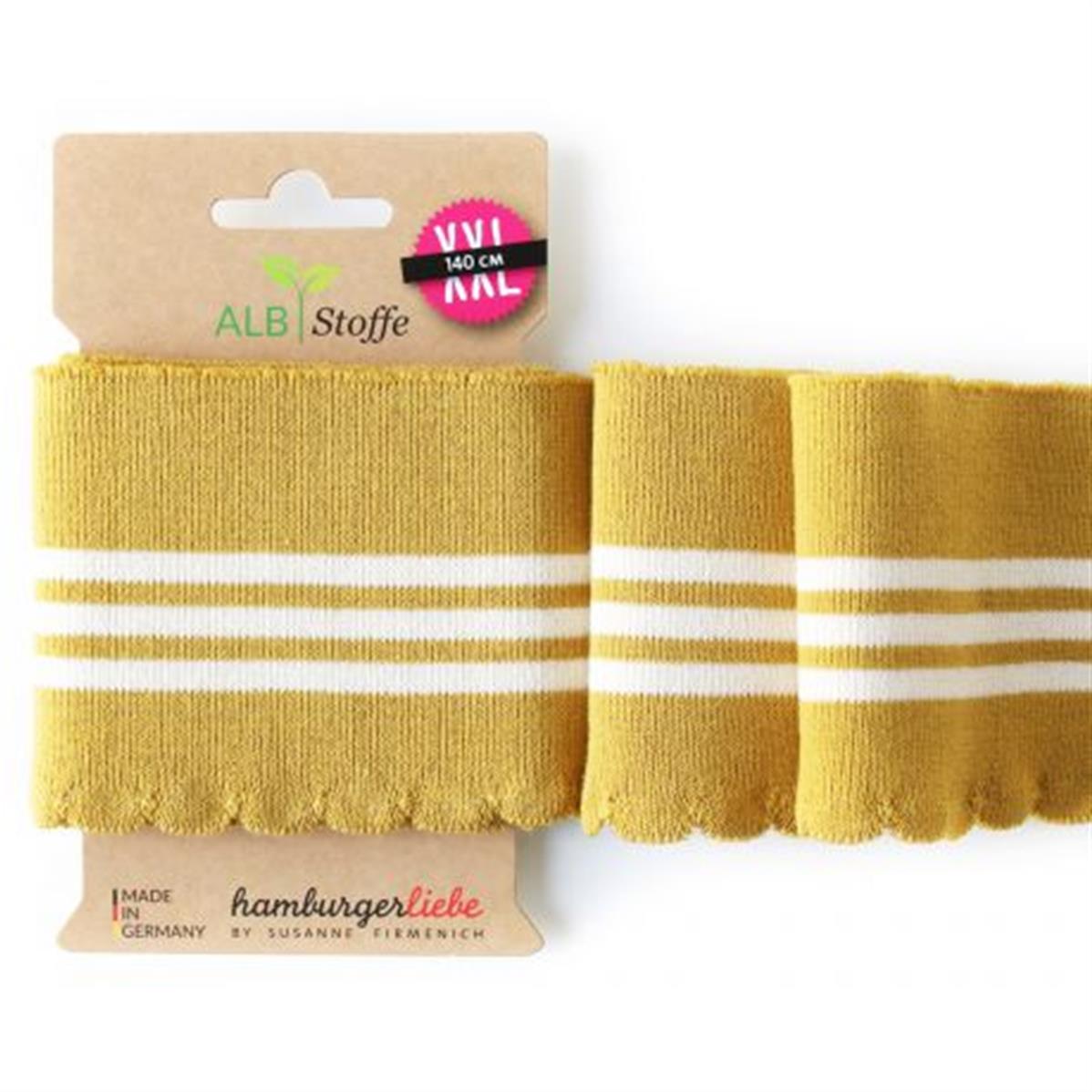 Couleurs très douces pour ce bord côte de 140 cm de long avec une jolie découpe festonnée. Qualité exceptionnelle.