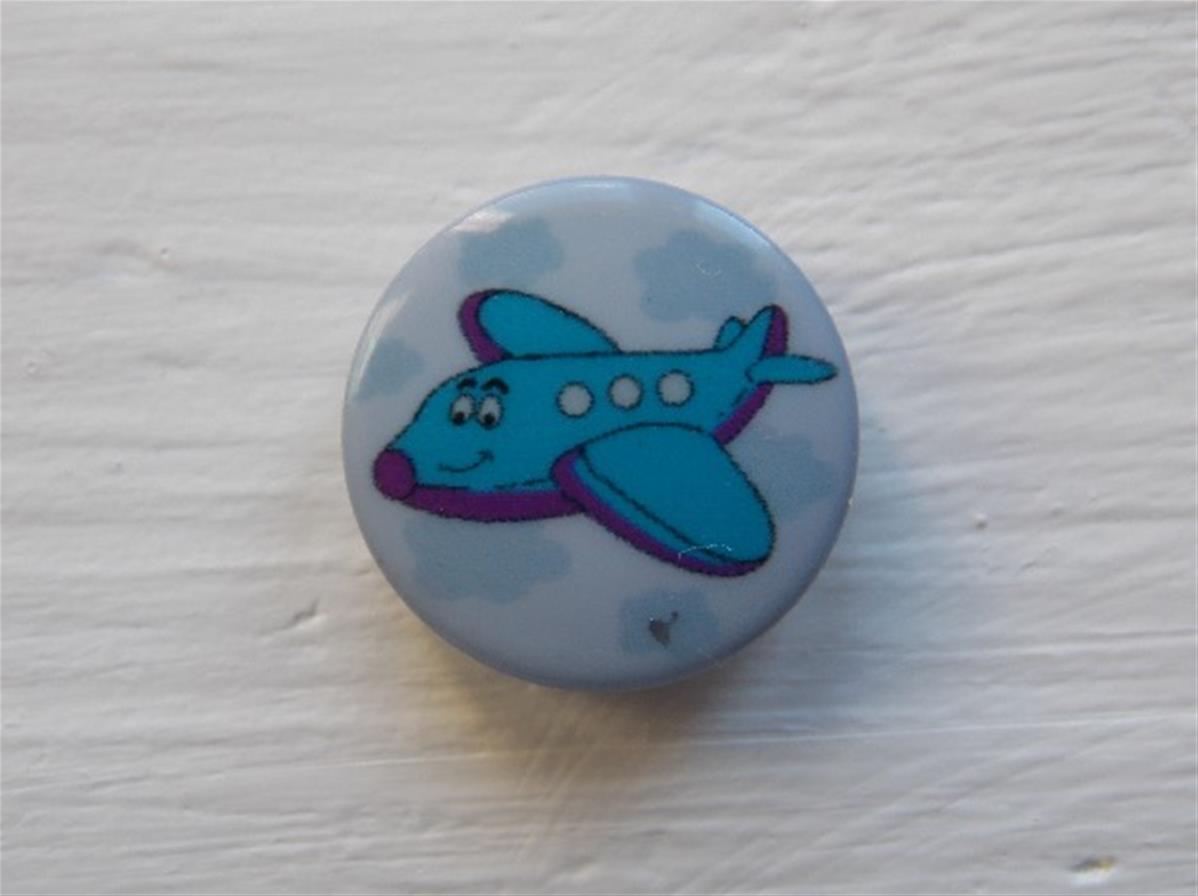 Joli petit bouton légèrement bombé. C'est un bouton qui cependant restera bien à plat sur un gilet car il n'est pas à pied, on le coud à travers la fente du dessous. Il est parfait pour un pull de petit garçon !
