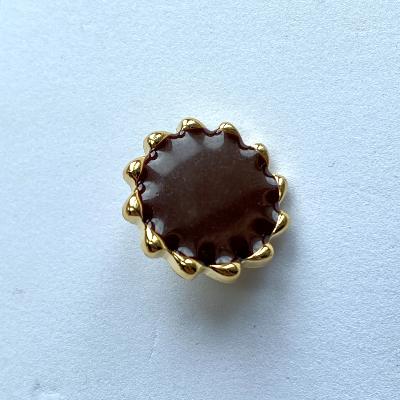 Bouton cossu, très joli. A pied, il est en acrylique et fait 22 mm de diamètre
