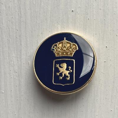 Emaillé en bleu marine sur le dessus avec représentation d'armoiries royales. So British.