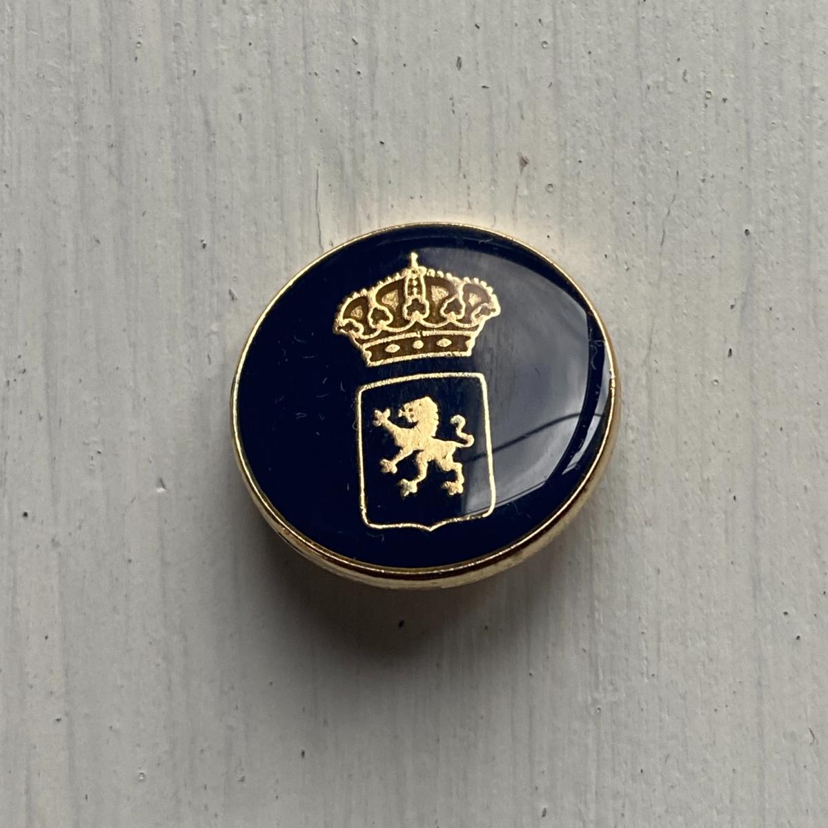 Emaillé en bleu marine sur le dessus avec représentation d'armoiries royales. So British.