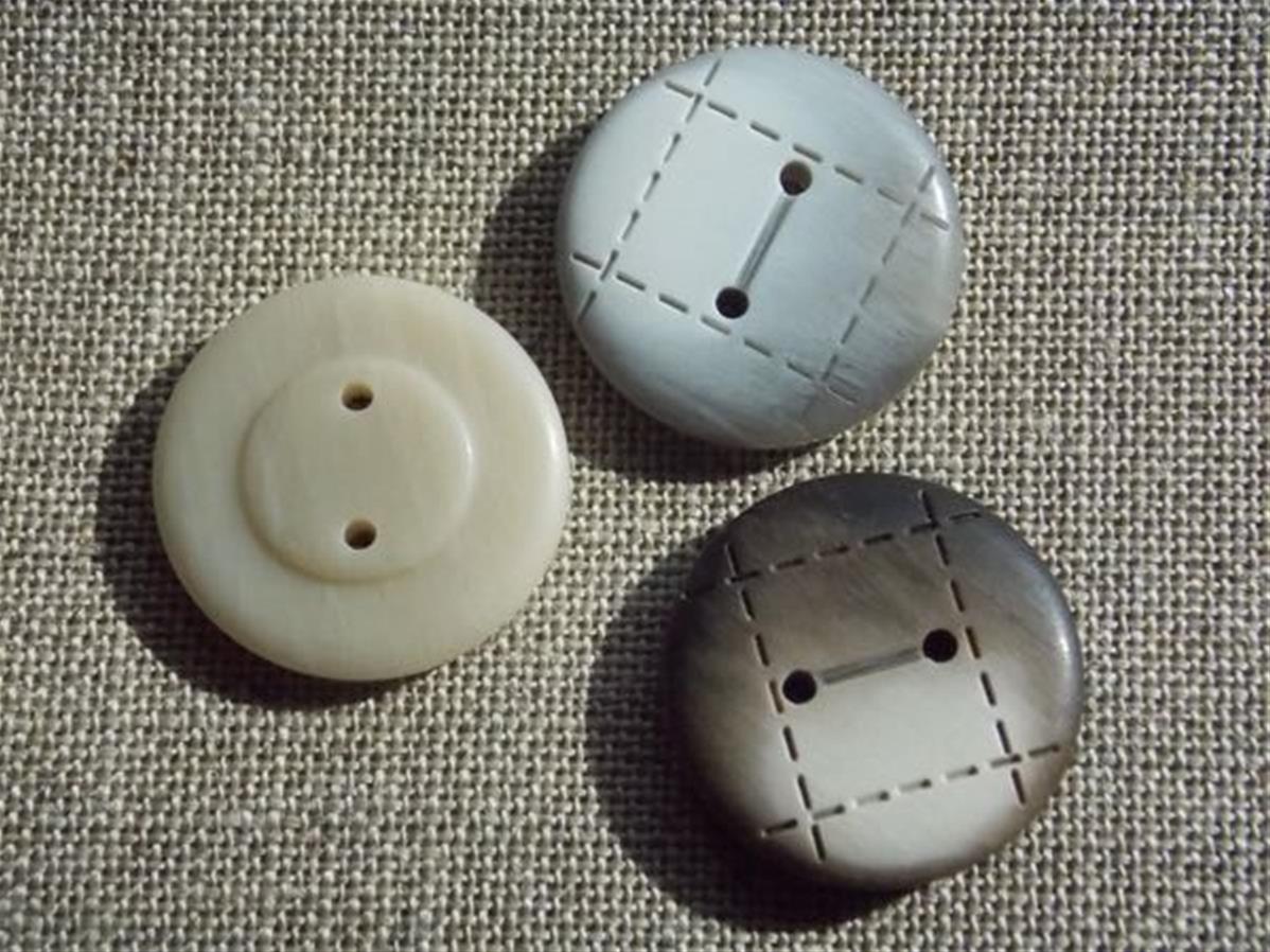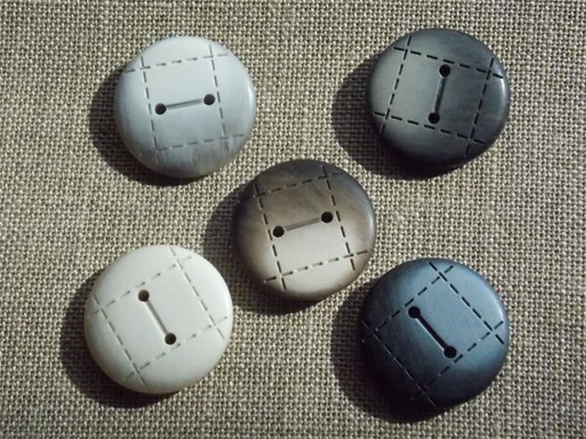 Bouton de 25 mm de diamètre, traversé par des lignes de points. En acrylique. Deux trous. Il conviendra pour des gilets de laine, des vestes, blousons ...