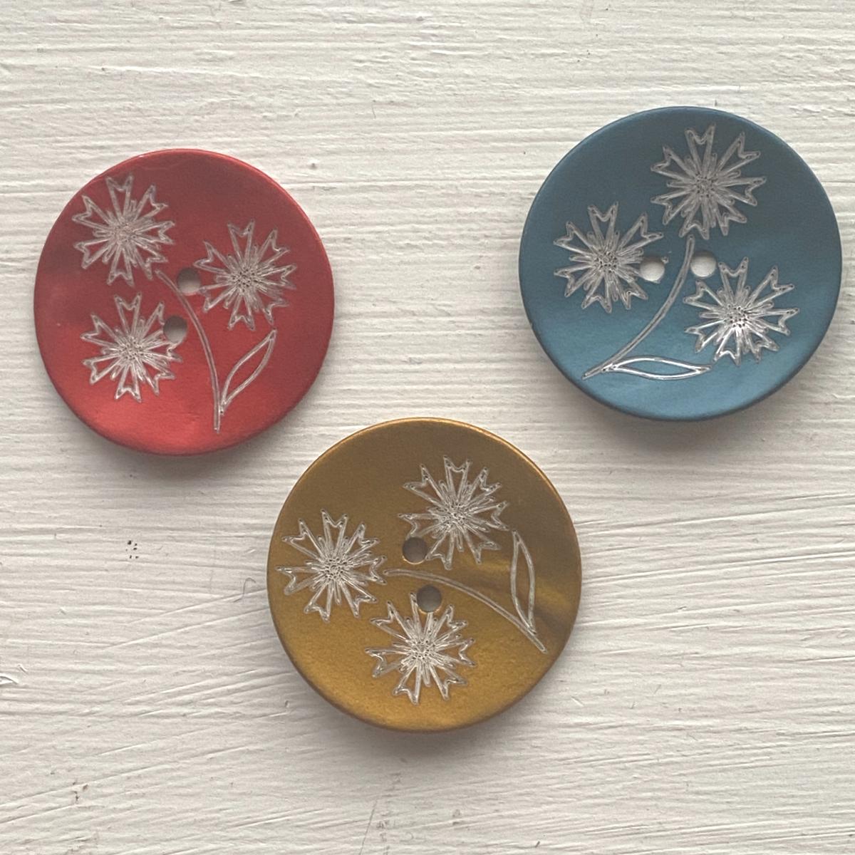 Très joli bouton en nacre avec une fleur incrustée sur le dessus.  Il fait 25 mm de diamètre.
