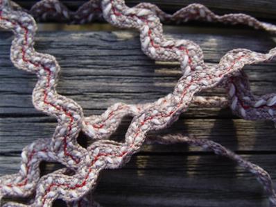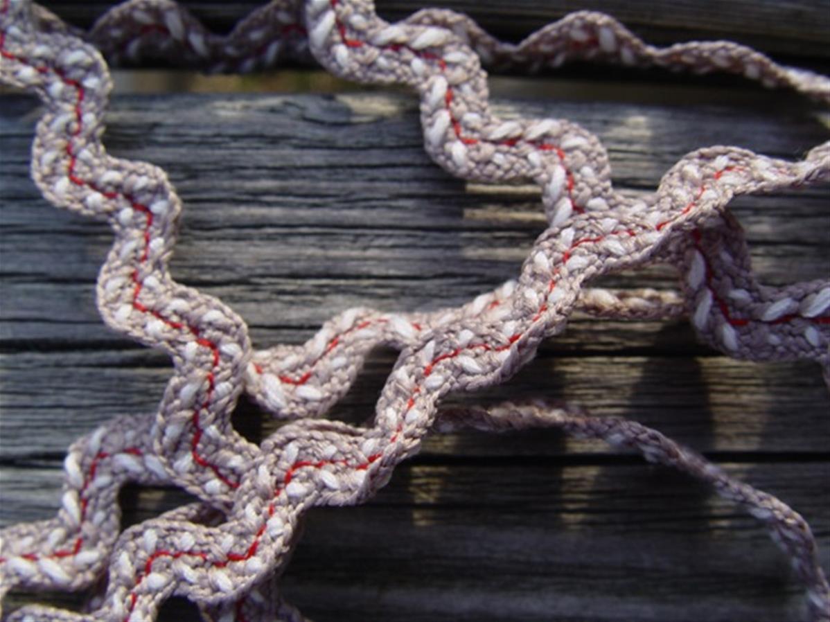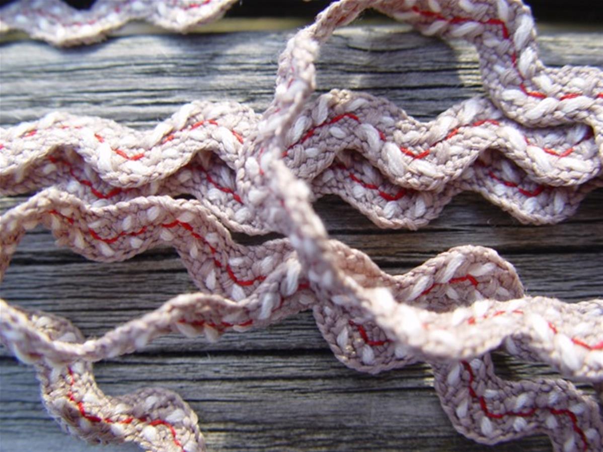 Superbe croquet en lin-coton, avec un enchevêtrement de rouge et blanc sur un fond taupe