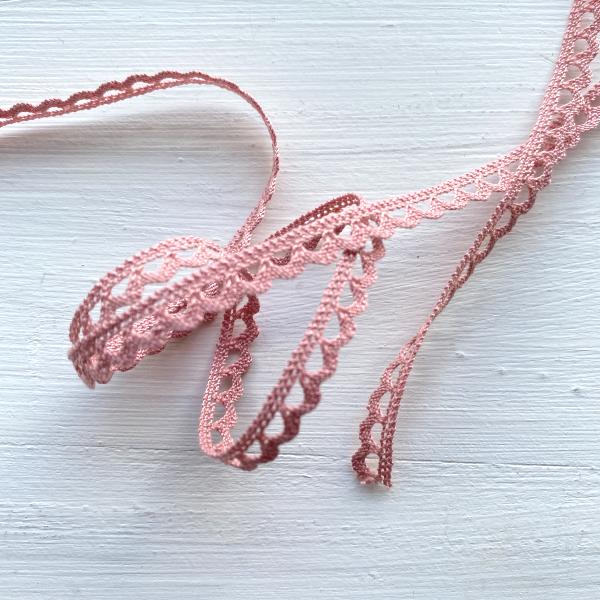Dentelle toute fine, 8 mm dans sa partie la plus "large". Vendue au mètre. 100 % coton