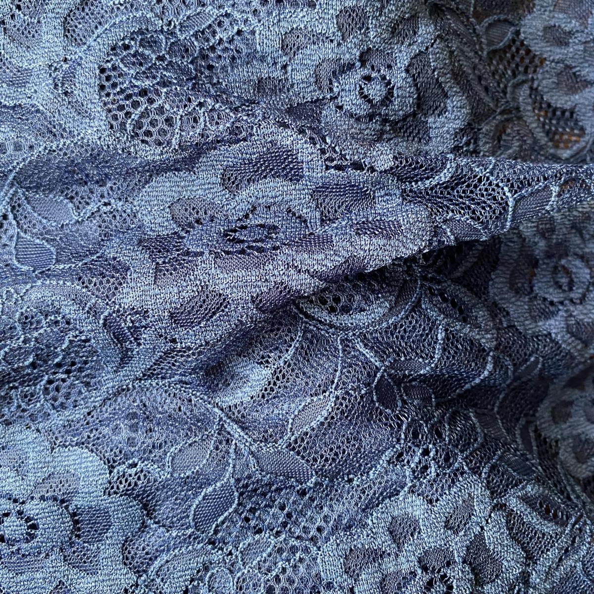 Dentelle en 100 % nylon, en 150 cm de large, vendue par 25 cm x 150 cm. Elle est très bien finie, souple et douce au toucher. Elle peut être utilisée pour poser par dessus une robe en jersey par exemple.