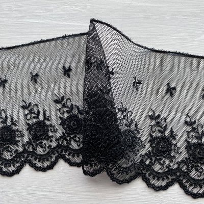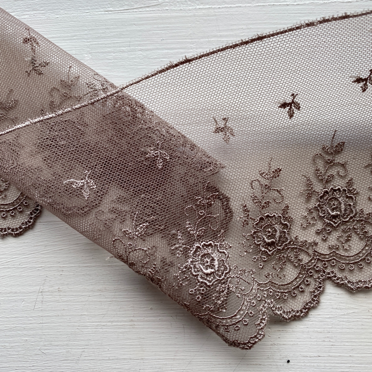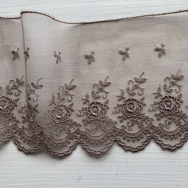 Tulle brodé de 10 cm de large, vendu au mètre.