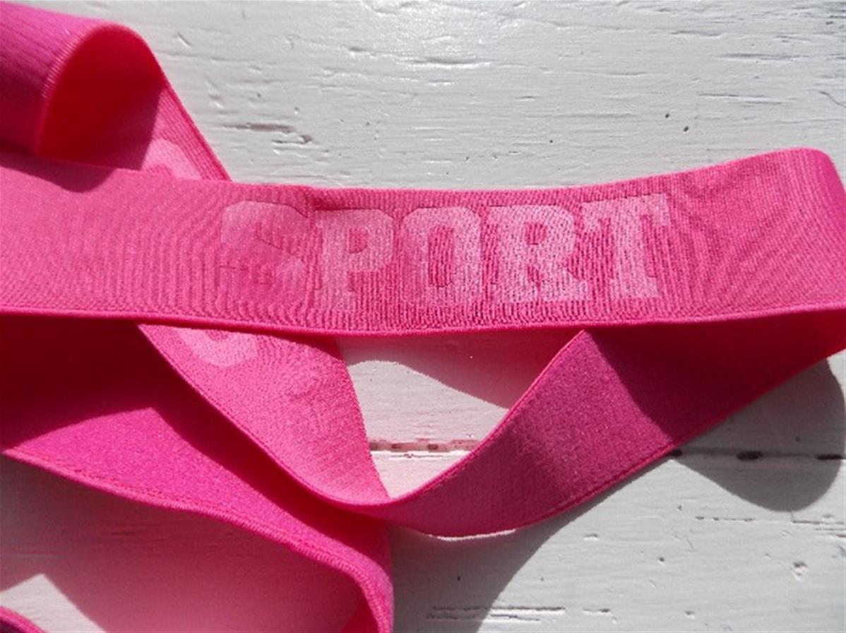 L'inscription "sport" est tissée dans l'élastique. Top qualité.