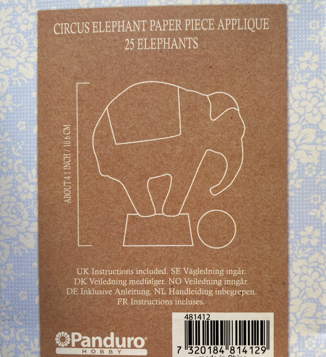 Gabarits pour éléphants, collection Circus dessinée par Tone Finnanger pour Tilda. Gabarits prédécoupés pour  patchwork ou appliqués. Instructions incluses.