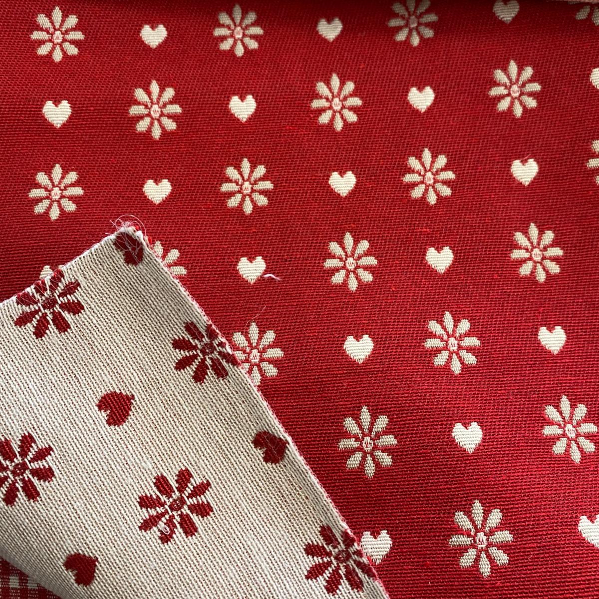 Fleurs sur fond rouge (le tissu est joli également sur l'envers qui représente le négatif )