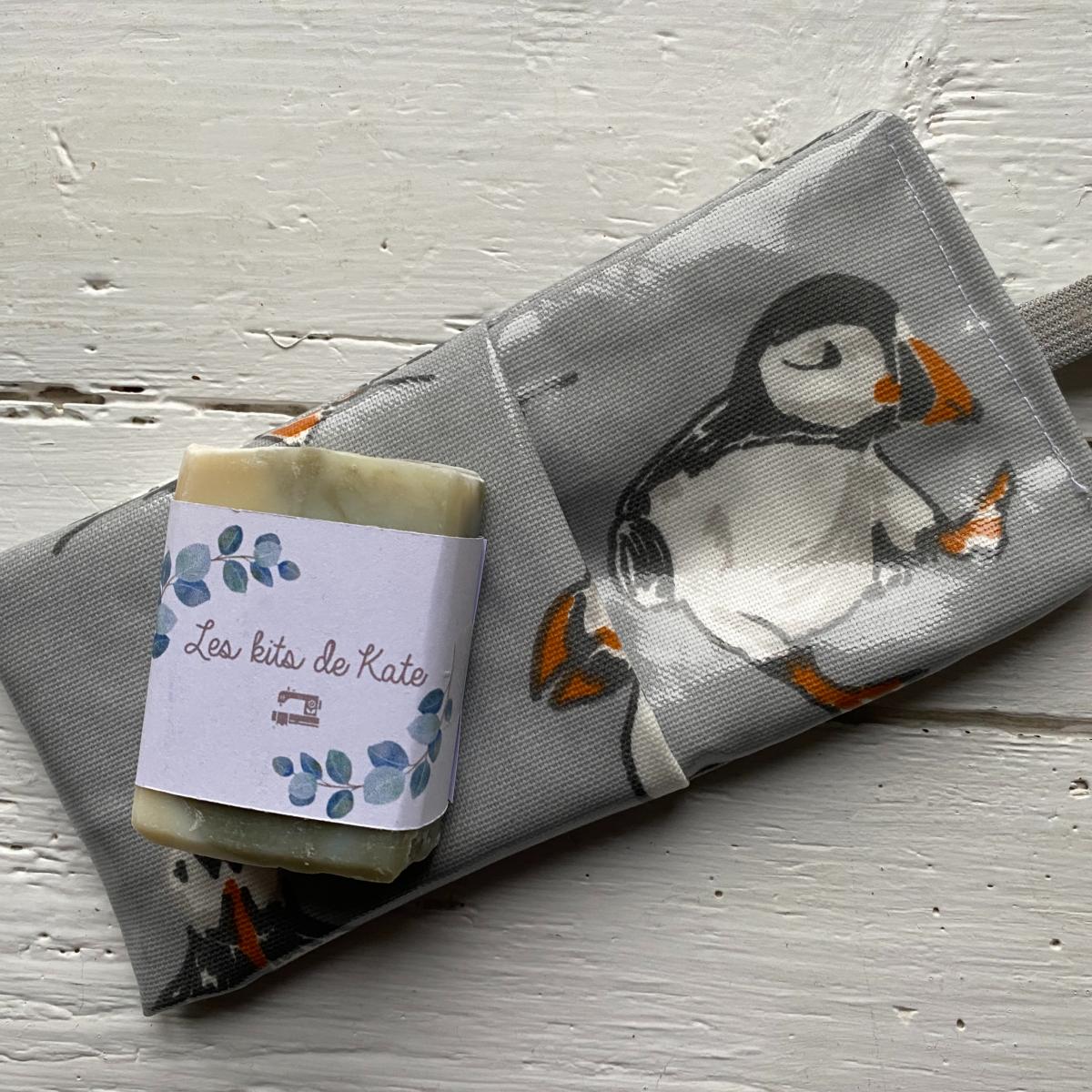 Ce kit de couture vous permettra de réaliser une pochette réversible imperméable pour votre savon ou votre shampoing solide (temps de réalisation : moins d'une heure !)