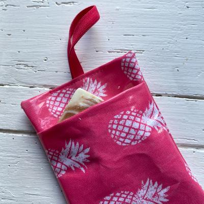 Pratique pour les escapades, vous pourrez emporter votre savon partout avec vous. Réalisé en tissu enduit il se lave en le passant tout simplement sous l'eau ou d'un coup d'éponge.