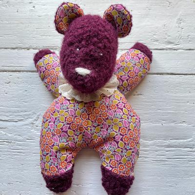 Ce kit vous permettra de réaliser un ourson doudou qui fait également office de hochet grâce à un petit grelot sécurisé glissé dans son ventre.