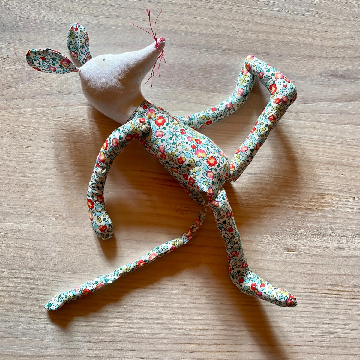 Ce kit vous permettra de réaliser une petite souris espiègle qui fait 25 cm de haut. Elle se juche partout grâce aux petits aimants au bout de ses pattes et le petit grelot dans son ventre émet un bruit de hochet.