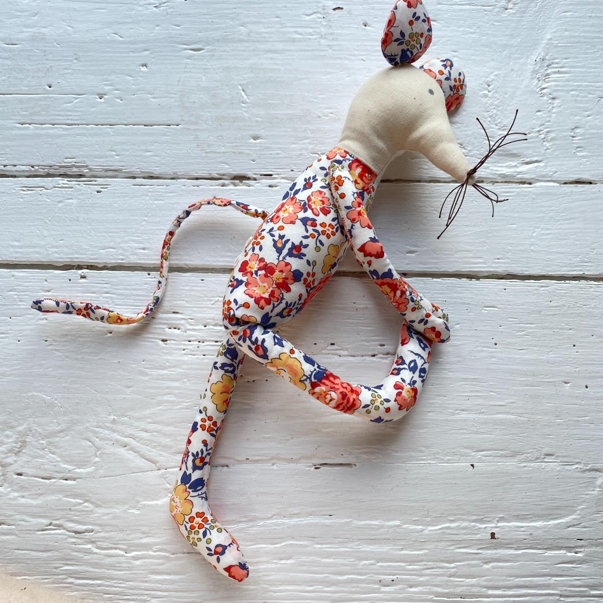 Ce kit vous permettra de réaliser une petite souris espiègle qui fait 25 cm de haut. Elle se juche partout grâce aux petits aimants au bout de ses pattes et le petit grelot dans son ventre émet un bruit de hochet.
