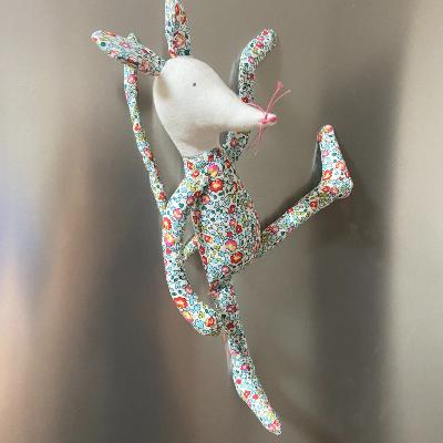 Ce kit vous permettra de réaliser une petite souris espiègle qui fait 25 cm de haut. Elle se juche partout grâce aux petits aimants au bout de ses pattes et le petit grelot dans son ventre émet un bruit de hochet.