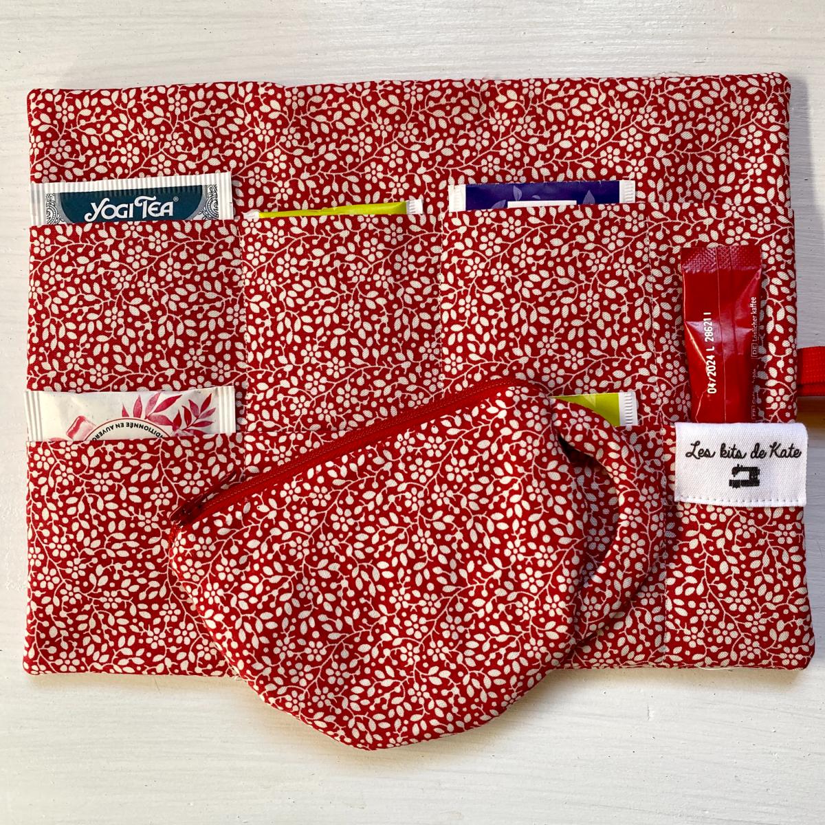 - Une trousse élastiquée, compartimentée pour les sachets de thé, tisane, cuillère, biscuits ...