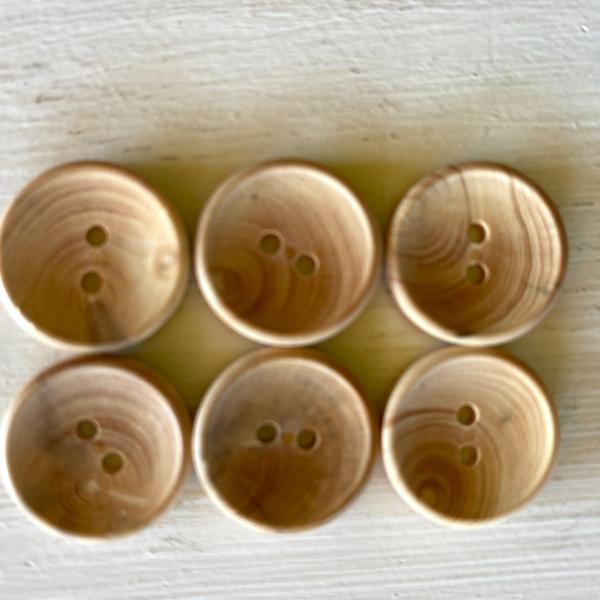 Lot de 6 boutons en buis, fabrication française. 18 mm de diamètre, deux trous