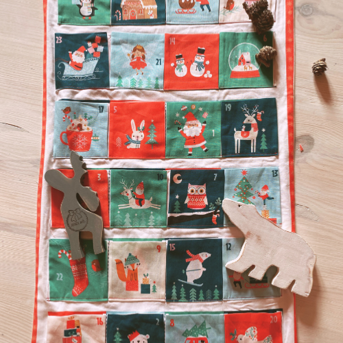 Il permet de confectionner un calendrier de l'Avent très lumineux ! Il suffit de découper les cases qui sont à gauche du panneau et de les coudre sur la partie droite du panneau !