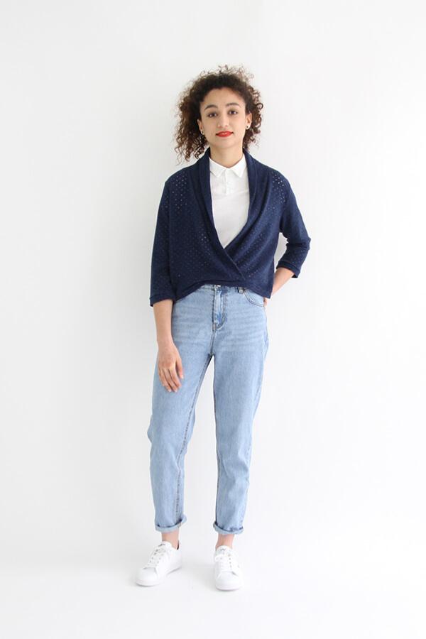 Je suis Cupidon, un pull cache-coeur léger. Je serais votre compagnon pour les journées fraîches. Je vous enveloppe avec délice dans mes bras amoureux.