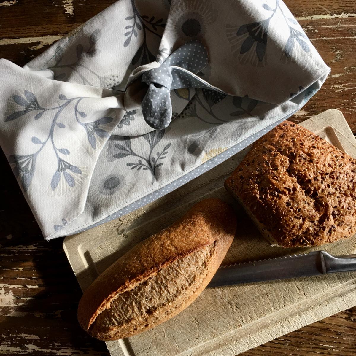 Ce patron vous permettra de réaliser un sac souple, inspiré du furoshiki, adapté à la forme de votre pain.