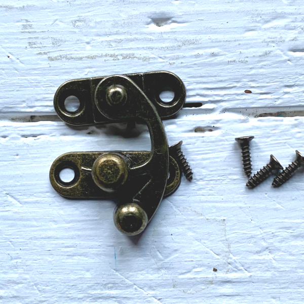 Petit fermoir en laiton avec crochet. Il est vendu avec les vis.