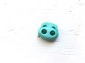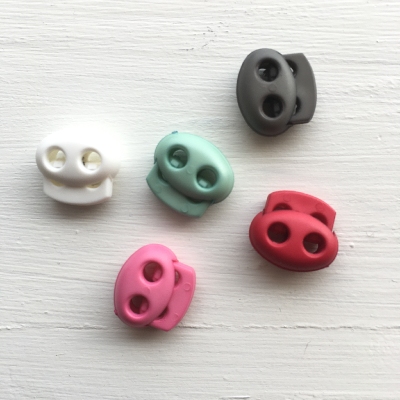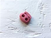 1 cm de long. Permet de passer un petit cordon d'un ou 2 mm de diamètre. C'est le serre-cordon utilisé pour le sac filet du Kit de Kate. Peut être utilisé avec de la queue de souris mais pour un cordon tricolté, il vaut mieux prendre la taille au dessus.