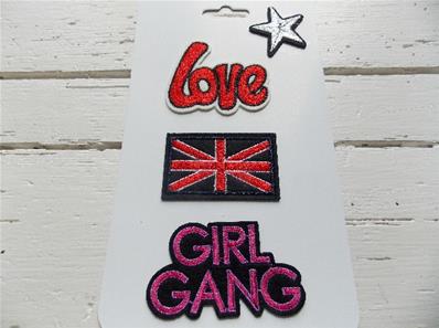 Prix indiqué pour 4 motifs. Spécial filles ! Les motifs font environ 6 cm de large sur 4 cm de haut, sauf l'étoile qui fait env. 3 x 3 cm
