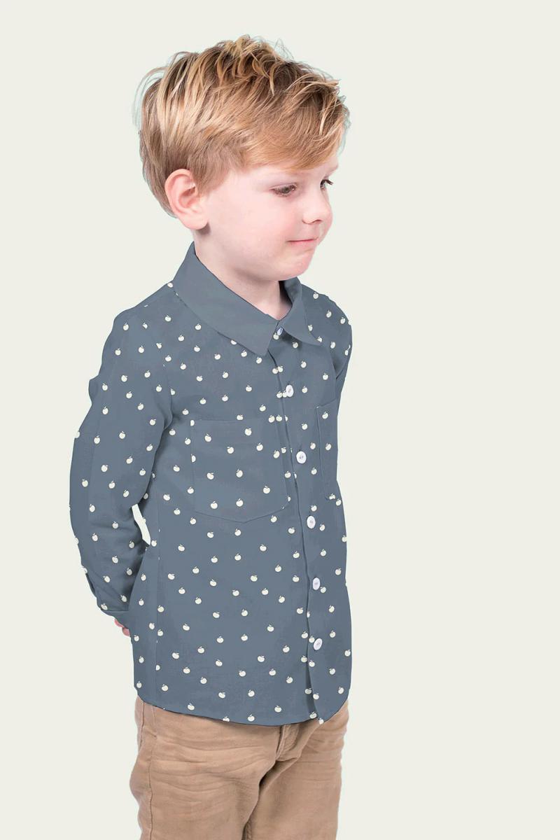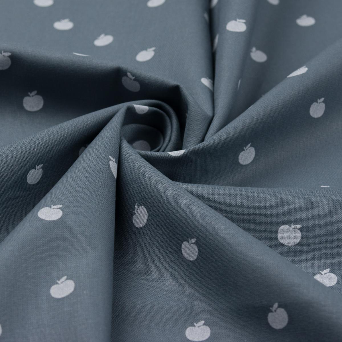 Popeline de coton pommes gris bleu