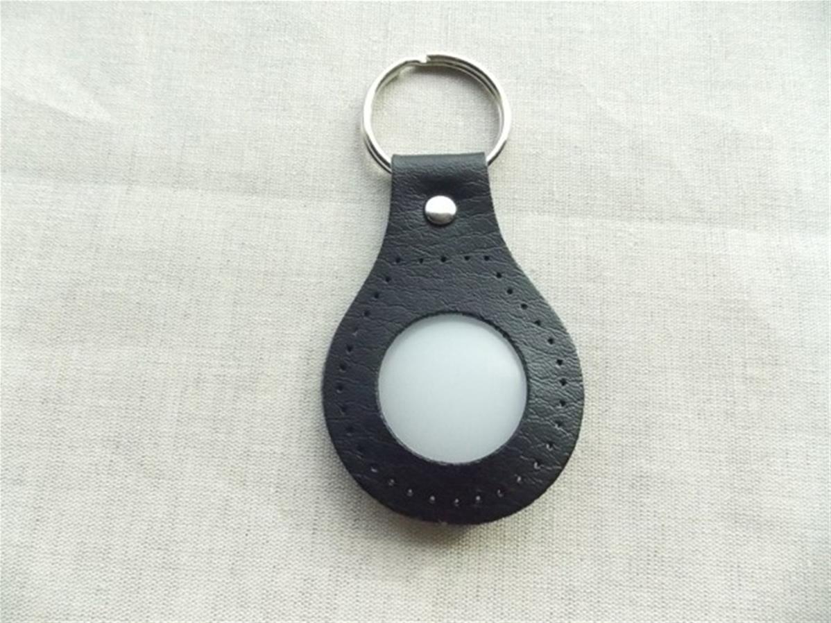 Ce porte clefs boule en cuir synthétique mesure 4,5 cm x 9 cm.
