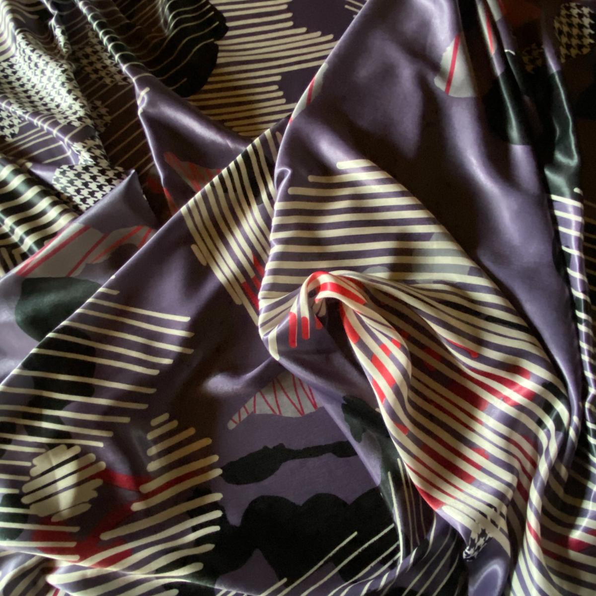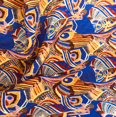Cet imprimé est très avant-gardiste ! Très grande recherche graphique, il mélange plusieurs motifs, plusieurs couleurs, il est très moderne et sera superbe en jupe longue, robe longue ou encore pantalon très ample. Il donnera vraiment le petit plus à une tenue et vous permettra de vous "détacher du lot".