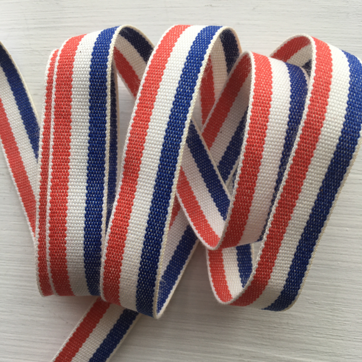Hissez les couleurs ! Ruban de sergé coton robuste, en 1,5 cm de large, aux couleurs bleu-blanc-rouge.