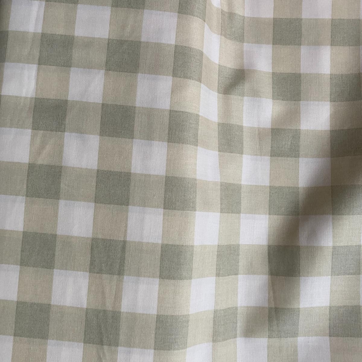 Joli écossais dans des teintes "neutres", difficiles à décrire, entre la couleur sauge très très clair, le beige très très clair On parle de teintes japonaises très douces.