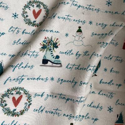 Magnifique imprimé sur le thème de Noël, fond blanc cassé