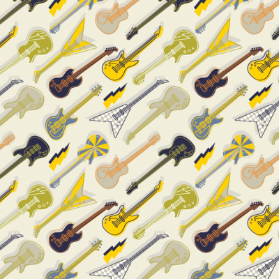 Tissu collection rock on - 3 Guitares - jaune Reste 25 cm
