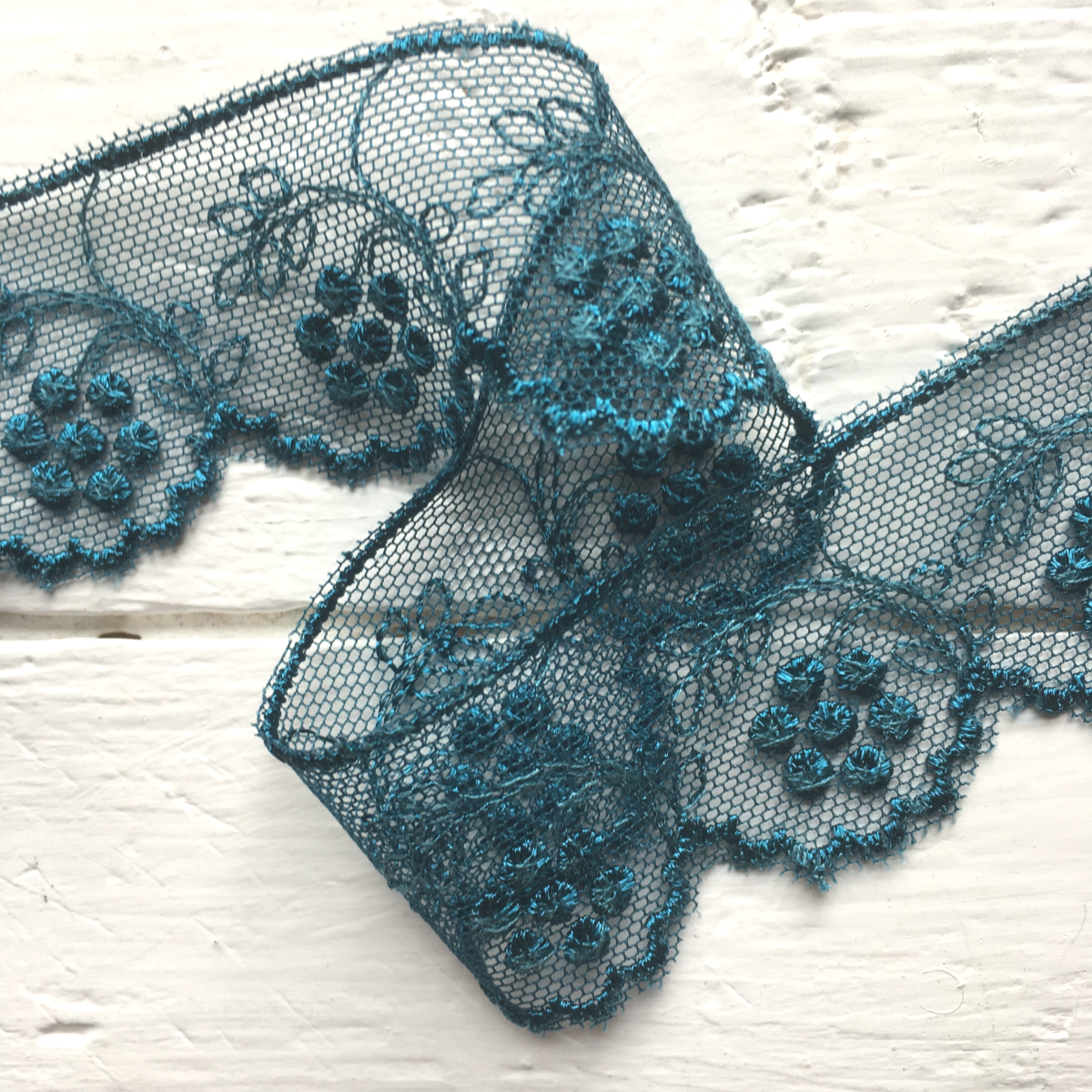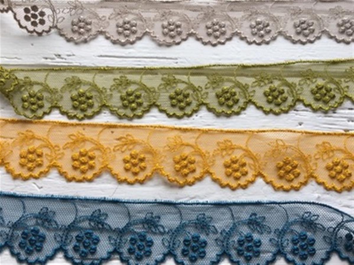 Très joli tulle brodé dans une gamme de couleurs modernes. Il fait 3 cm de large et son prix est indiqué pour un mètre. Il sera du plus bel effet sur une robe, un col, un chemisier, un cardigan ...