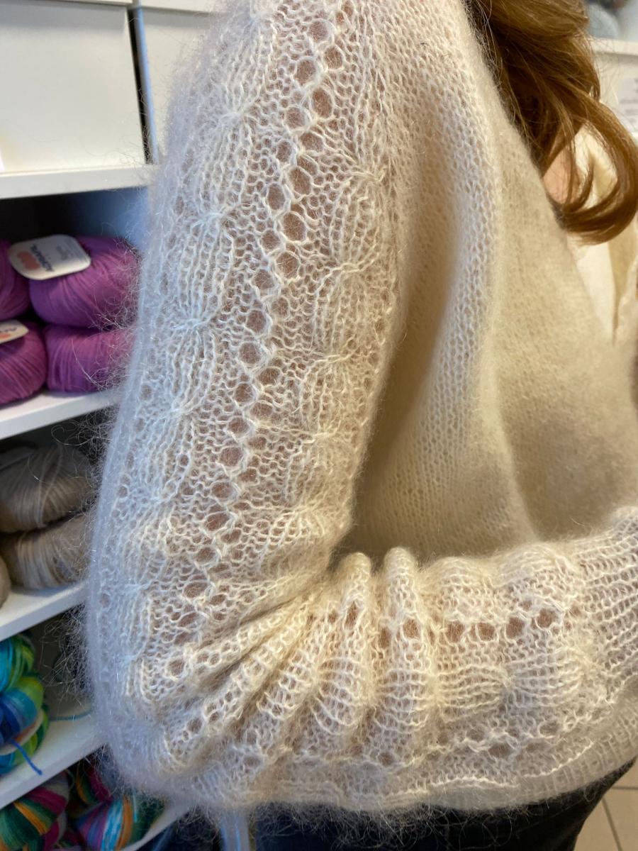 50% coton 32% laine 18% alpaga, très doux et parfait pour les soirées d'été.